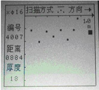 6、 剖面掃描:將探頭和路徑測量裝置組合后沿某一測線移動探頭,即可得到該測線下鋼筋的分布情況。