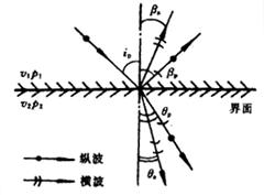 一種波(縱波)入射到固體界面時,不僅波方向發(fā)生變化,而且波型也發(fā)生變化,分離為反射縱波、反射橫波、折射縱波、折射橫波。各類波的傳播方向各不相同,符合反射定律和折射定律